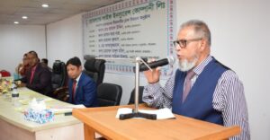 ক্যাপশন চেয়ারম্যানকে ফুলেল শুভেচ্ছা জানাচ্ছেন কোম্পানির কর্মকর্তাবৃন্দ।