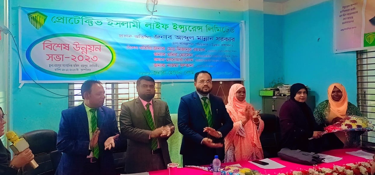 চতুর্থ প্রজন্মের বীমা কোম্পানি প্রোটেক্টিভ ইসলামি লাইফ ইন্স্যুরেন্সের একটি বিশেষ উন্নয়ন সভা সম্প্রতি নরসিংদীর রায়পুরা কার্যালয়ে অনুষ্ঠিত হয়েছে। সভায় প্রধান অ‌তি‌থি হি‌সে‌বে উপ‌স্থিত ছি‌লেন কোম্পানির ডিএম‌ডি