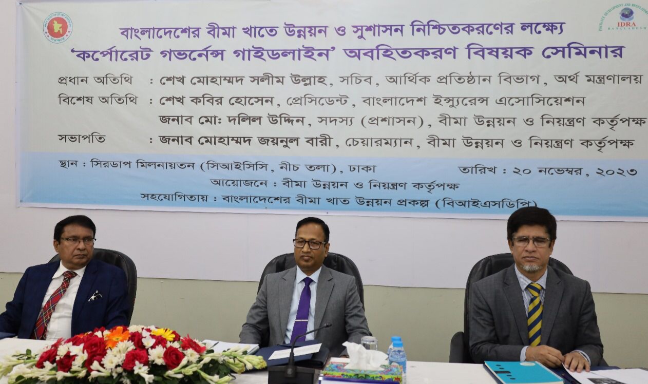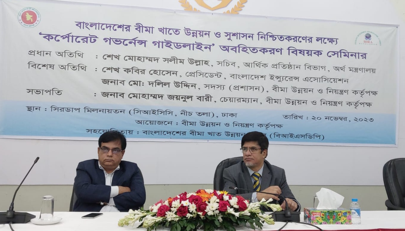 বীমা খাতের উন্নয়ন ও সুশাসন নিশ্চিত করতে কর্পোরেট গভর্নেন্স গাইডলাইন নিয়ে সেমিনার করেছে বীমা উন্নয়ন ও নিয়ন্ত্রণ কর্তৃপক্ষ (আইডিআরএ) । সোমবার (২০ নভেম্বর) রাজধানীর সিরডাপ